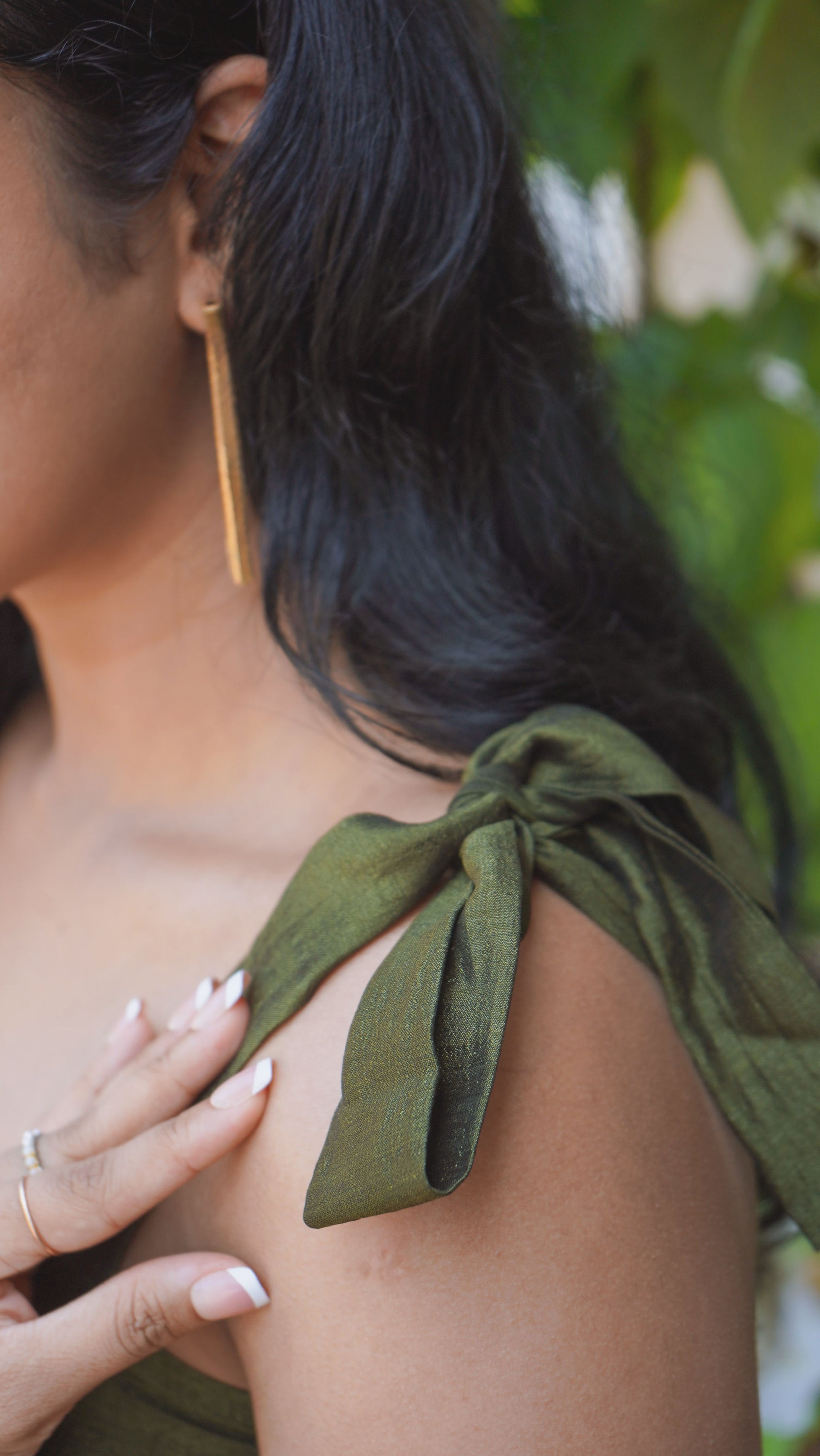 Elevate your wardrobe with the Emerald Bow Top, a sophisticated choice for seasonal style. Its adjustable bow-tie straps offer a tailored fit while adding a distinct visual charm. Designed with a relaxed silhouette, this top ensures comfort without compromising elegance, making it ideal for casual outings, social gatherings, or intimate dinners. Embrace festive fashion with this versatile piece that blends ease and refinement seamlessly.