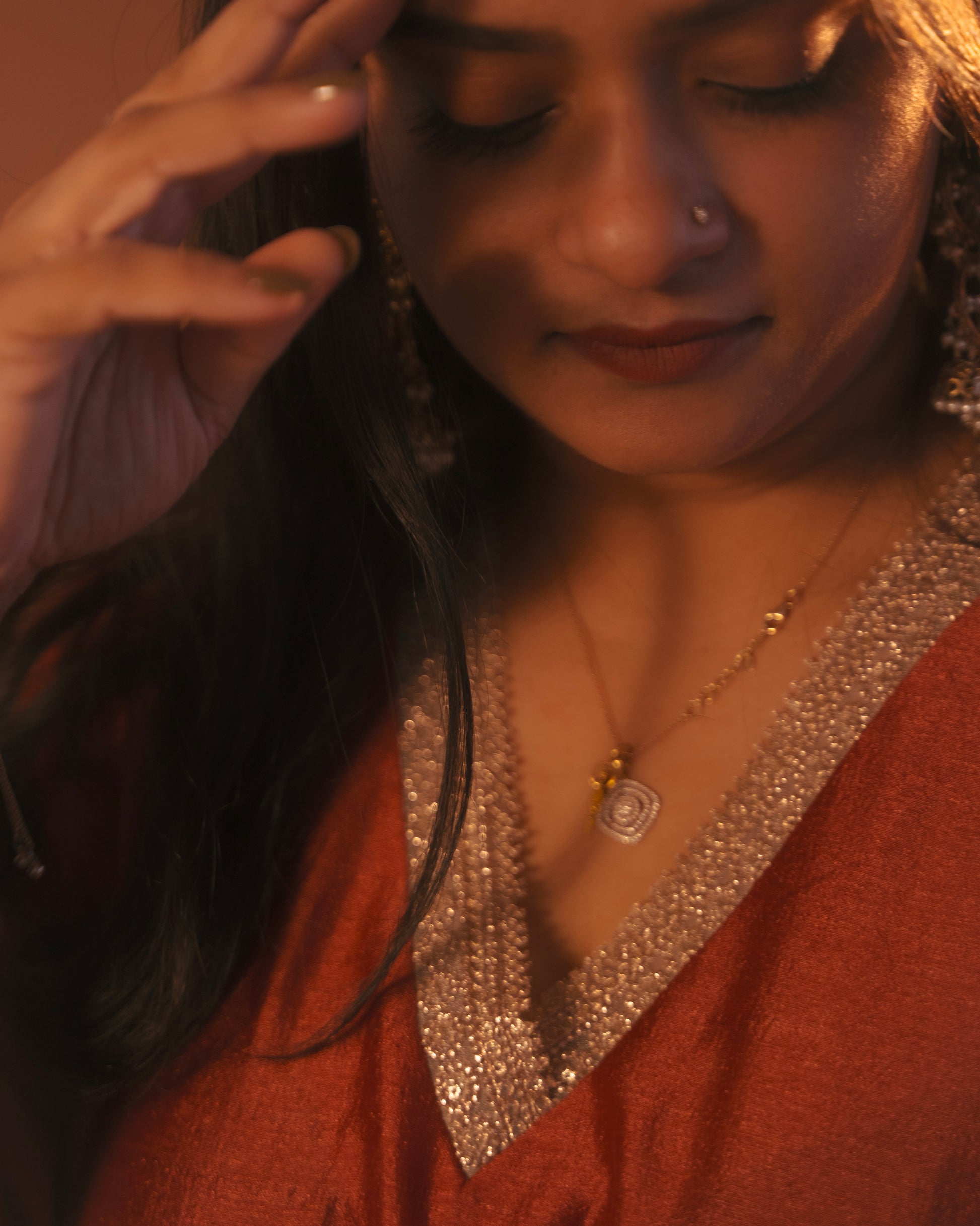 The Rose Petal Kaftan combines comfort and elegance with a flattering V-neck and a free-flowing silhouette that keeps you cool and confident throughout the day. Its soft onion pink shade offers a fresh alternative to traditional festive attire, perfect for those seeking a lightweight yet regal look. Pair it with statement earrings and sleek heels to create an effortlessly sophisticated outfit ideal for celebrations like Onam. This kaftan is a stylish update for anyone who loved our golden cream version but desired a new color option.